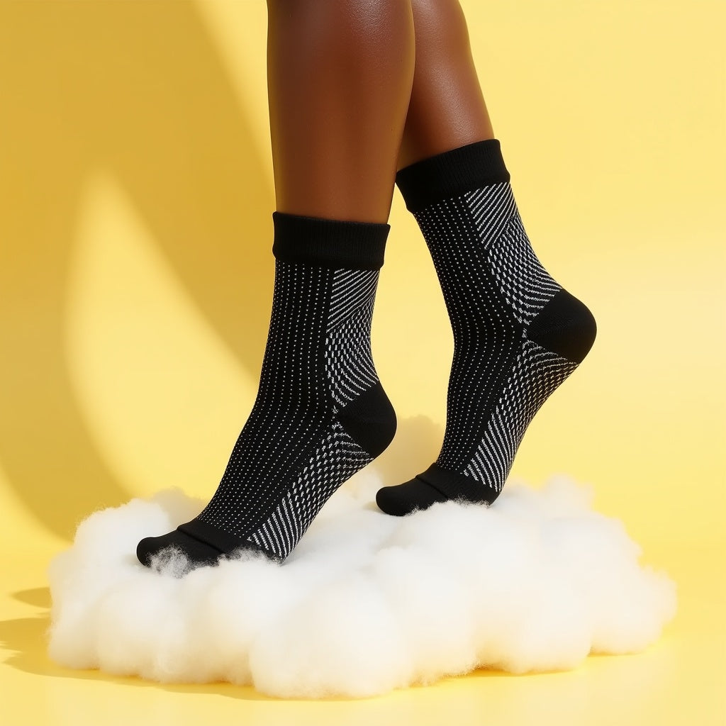Nos chaussettes aide à améliorer la circulation sanguine, à réduire les gonflements et àsoulager la fatigue des jambes et des pieds en ciblant précisément les zones douloureuses de votre pied grâce à leur technologie de compression graduée (15-25 mmHg). La pression ciblée sur la voûte plantaire soulage immédiatement les symptômes de fasciite plantaire et réduit l'inconfort après une longue journée debout.